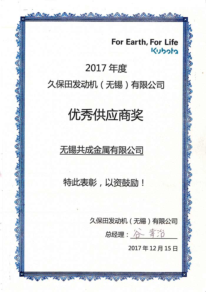 2017年度無錫久保田優秀供應商